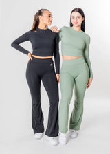 Feel effortlessly comfortable and stylish in any situation with the Euphoria Set by PeachyPassion. This set, consisting of flared leggings and a long-sleeved crop top, is the epitome of comfort and style. Ideal for your workout, casual days, or even as a streetwear look – the Euphoria Set will give you an air of serenity and confidence. 💫