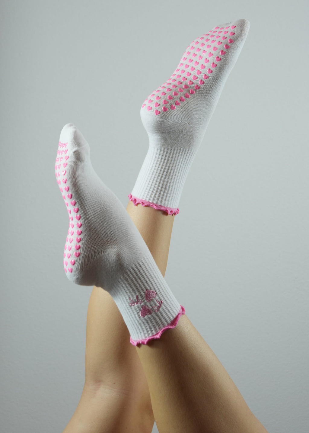Für alle, die Pilates mit einem Hauch von Princess Energy lieben 👑✨ Unsere Pink Princess Socks vereinen Funktion, Komfort & das süßeste Design ever – perfekt für dein nächstes Pilates-, Yoga- oder Barre-Workout. Die zarten Rüschen, das Herz-Stickdetail und die pastellrosa Grip-Sohle machen sie zu einem echten PeachyPassion Essential.