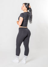The Flourish Scrunch T-Shirt is an absolute must-have for your workout! With a trendy scrunch at the front and a cropped cut , this shirt is not only stylish but also super comfortable . Made from high-quality materials , it is breathable and ensures that you always feel comfortable during your workout. Whether in the gym or jogging in the park, this T-shirt will not let you down and will offer you a comfortable wearing experience . Get your Flourish Scrunch T-Shirt now and be ready to train in style!