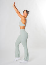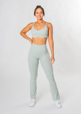 Das Vitality Flared Set ist die perfekte Wahl für dein nächstes Workout im Fitnessstudio. Das Set besteht aus einer Leggings und einem Sport-BH, die dir den nötigen Support bieten und dabei extrem bequem sind.