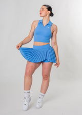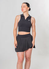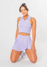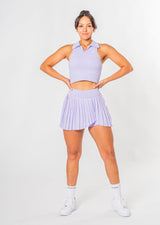 Grössen: Tanja (Black, Sky Blue) trägt Grösse S (Oberteil) und Grösse M (Skort) und Steffi (Lilac) trägt Grösse S.