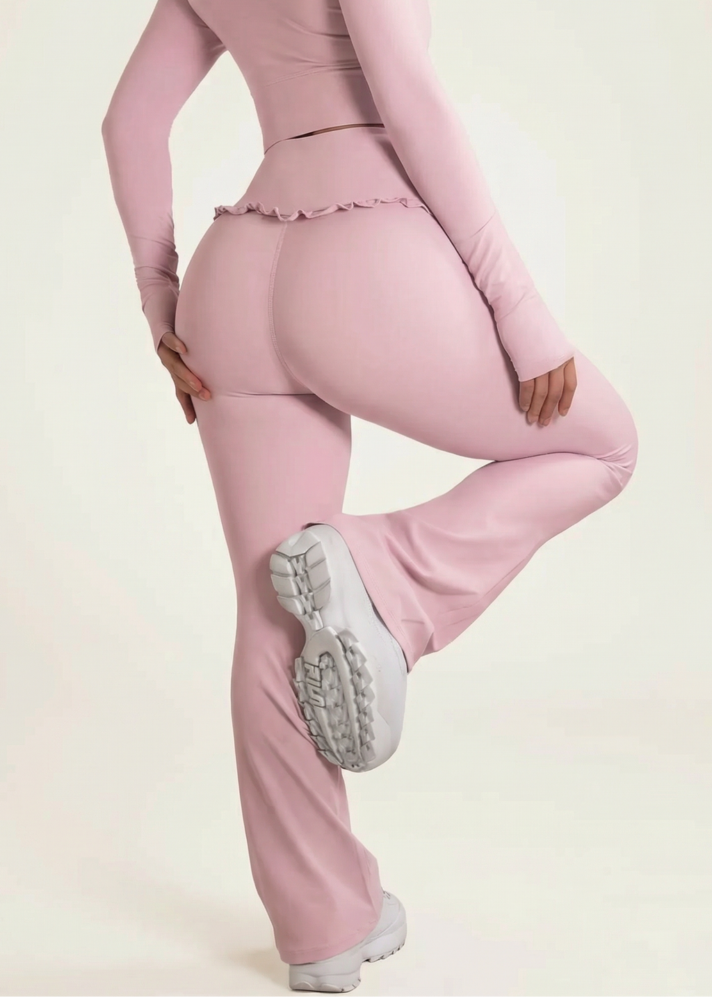💖 Ballet Ruffle Flared Leggings: Diese Pants geben dir genau den Look, den du willst: snatched waist, sculpted curves & ein lifted booty ✨ Feminin, flattering und ultra comfy – perfekt für Gym und Alltag.