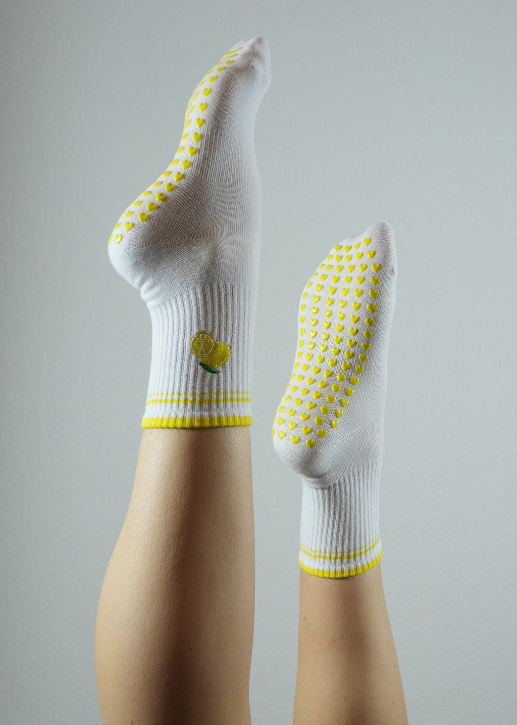 🤍 Warum du sie lieben wirst: ✨ One Size fits all – ultra-stretchy & passt sich jeder Fußform an ✨ Rutschfeste Grip-Sohle – sicherer Halt & Balance bei jeder Bewegung ✨ Buttery soft & atmungsaktiv – leicht, comfy & nie zu dick ✨ Lemon-Stickerei – fresh, playful & super clean 🍋 ✨ Pflegeleicht & langlebig – bleibt soft & formstabil nach jedem Waschen